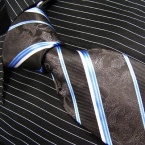 Grey striped ties for men great gift mens Italian style silk neck ties cuff ...