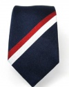 100% Silk Woven Navy and Red Classic Twill Striped Skinny Tie