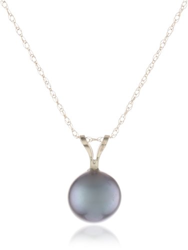 14k Yellow Gold AA 7.5x8mm Black Freshwater Cultured Pearl Pendant Necklace, 18"