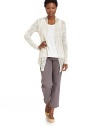 Styled in a faded motif pattern, ombré stripes, dolman sleeves and slash pockets renew this lengthy wool-blend sweater.