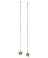 Catch a falling star. Betsey Johnson's pair of long earrings are crafted from gold-tone mixed metal with gold-tone lucite stars and glass accents to light up the night. Approximate drop: 9-1/4 inches.