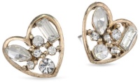 Betsey Johnson "Iconic Baguette" Crystal Heart Stud Earrings