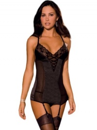 Black Stretch Satin & Lace Garter Slip G-string 2 Piece Set