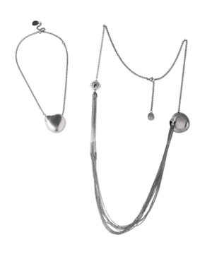 Two styles combine in one polished look. Breil's versatile necklace can be worn as a single heart-shaped sphere or as a long, multi-chain layered style. Crafted in polished stainless steel. Approximate length: 14 inches + 4-inch extender. Approximate drop: 1-1/10 inches.