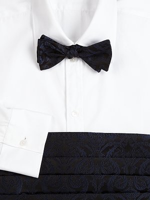 Includes pre-tied bowtie and stitched cummerbund