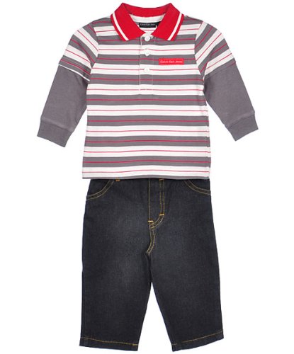 Calvin Klein Baby-boys Newborn Polo Long Sleeve Tee And Jean, Assorted, 3-6 Months