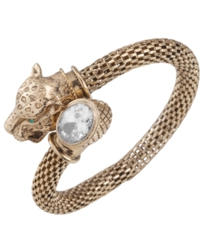 Fiercely fashionable. Carolee's elegant wrap bangle features a panther head with green glass eyes and an oval-cut clear glass accent. Set in textured antique gold tone mixed metal. Approximate diameter: 2-1/4 inches.