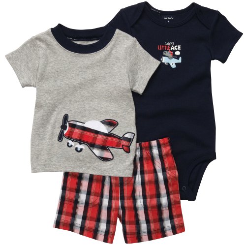 Carters Boys 3-12 Months 3 Piece Plane Short Set (9 Months, Grey/Navy)