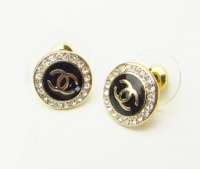 Crystal Gold Logo Black Stud Earrings (Earring Diameter : 1/2'') Top 02