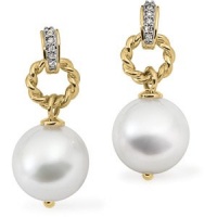 CleverEve's 18K Palladium White Gold Pair .06Cttw 12.00mm Near Rd South Sea Cultured Pearl & Diamond earrings