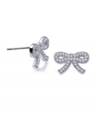 Complete the whole package. CRISLU's sparkling ribbon-shaped stud earrings add the perfect last-minute touch with a petite, cut-out design and round-cut cubic zirconias (1/2 ct. t.w.) for extra shine. Crafted in platinum over sterling silver. Approximate drop: 3/4 inch.