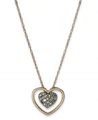 A romantic accent. This chic cut-out heart pendant is covered with round-cut diamonds (1/10 ct. t.w.) and crafted in 14k rose gold. Approximate length: 18 inches. Approximate drop: 1/3 inch.