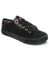 Comfy cute. Thick satin laces help these Linden sneakers from DKNY complement her fierce, fashionable style.