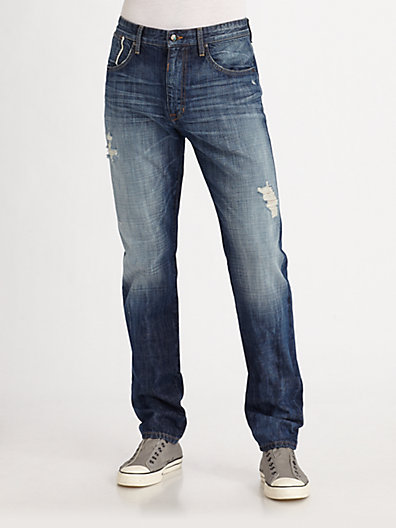 Classic selvedge denim with a straight-leg fit and plenty of character, thanks to individually-applied fades, rips and whiskers.
