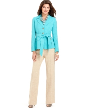 Evan Picone Suit, Belted Notched-Collar Jacket & Wide-Leg Pants