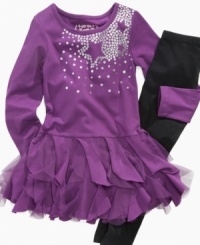 Make her the star of her own style. This sparkly dress and leggings set from Flapdoodles caps off her lovely looks.