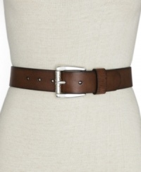 Beautiful floral etching on the buckle softens rugged leather for a country chic look.