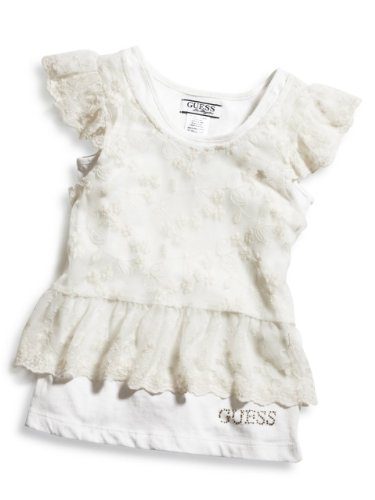 GUESS Kids Girls Little Girl Lace Top with Tank, OFF WHITE (4)