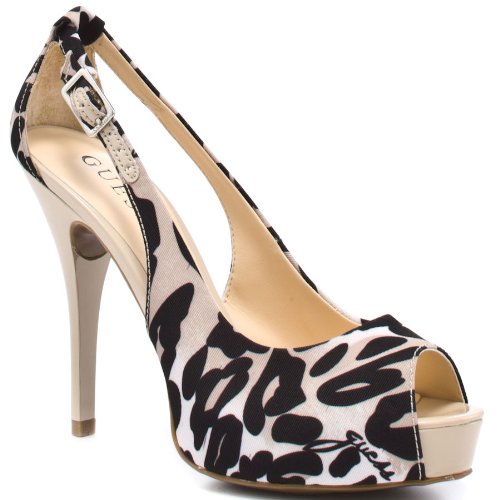 Guess Women's Hondo4 Peep-Toe Pump,White Fabric,6.5 M US