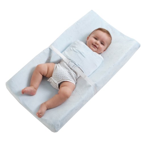 Swaddles and soothes newborns for cry-free diaper changes; Wrap is permanently attached to changing pad cover and adjusts to size of baby; For older babies, keeps them on their backs and with hands out of reach of diaper area100% polyester velboa; Machine wash and dryElastic all around provides secure fit for most contour changing pads; Buttonhole openings for pad's safety strapSwaddle wrap fits babies up to one year and beyond depending on weight; The swaddle wrap is not a safety belt; Always buckle your changing pad's safety belt around your child before you wrap your child's arms in the swaddle wrapOnly use the SwaddleChange with a changing pad that complies with ASTM Standard F2388; Do not allow the swaddle wrap to cover your baby's face; Do not use as a sleep aid; Never leave your child unattended while using this product