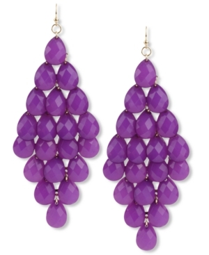 Perfectly pretty in purple. These chandelier earrings from Haskell flaunt a diamond design with clusters of purple acrylic beads in faceted teardrop shapes. Crafted in gold tone mixed metal. Approximate drop: 3-3/4 inches.
