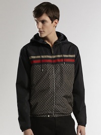 Versatile nylon jacket with attached hood, defined by signature Diamante and web details.