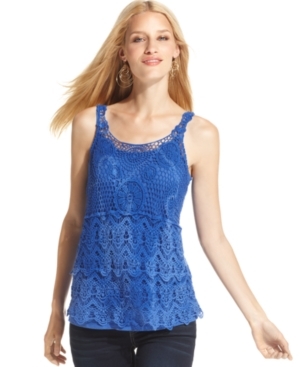 INC International Concepts Top, Sleeveless Layered Crochet Tank