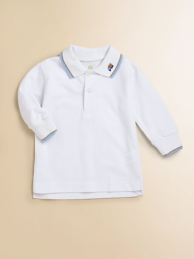 The classic pique cotton polo shirt gets a darling update with contrast trim and dumptruck embroidery.