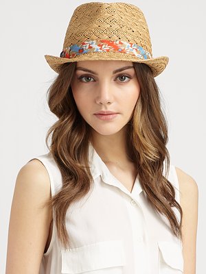 Classic structure and hand-woven straw gets colorful with a contrasting fabric band.