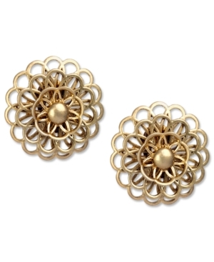 Floral framework. These fresh earrings by Jones New York lend a lovely look with a detailed floral design. Crafted in worn gold tone mixed metal. Clip-on backing for non-pierced ears. Approximate diameter: 1-1/4 inches.