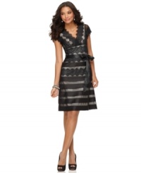 JS Collections Dress, Cap Sleeve V-Neck Ribbon Lace A-Line