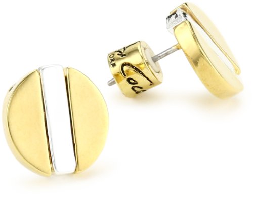 Kenneth Cole New York "Modern Deco" Gold and Silver Stripe Round Stud Earrings