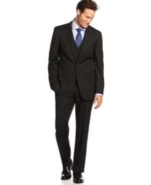 Basic black goes modern with a slim-fit on this 3-piece Kenneth Cole suit.