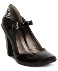 With a chunky heel and ultra sleek finish, Kenneth Cole's Joy Toy Mary Jane pumps are a great way to add shine to your day.