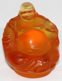LALIQUE Amber Crystal Happy Buddha Figurine