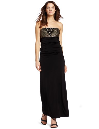 Laundry by Shelli Segal Women's Strapless Beaded Shirred Gown, Black, 0