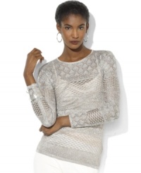 Lauren Ralph Lauren's sheer lightweight sweater features alternating cutaway patterns with interwoven Lurex® for a shimmery, sophisticated silhouette.