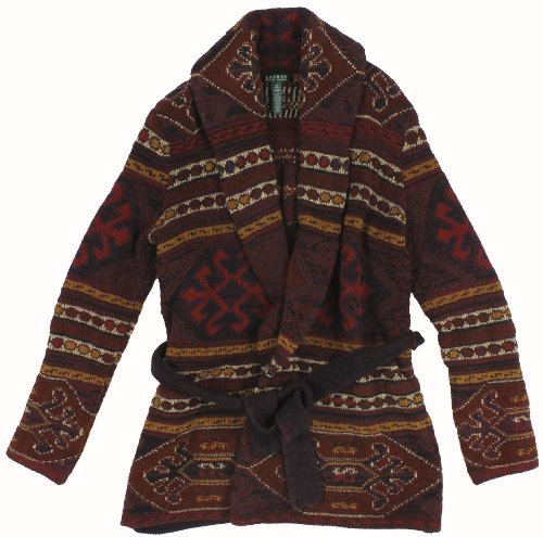 Lauren Ralph Lauren Women's Southwest Knit Shawl Collar Wrap Cardigan Sweater (Multi) (Small)