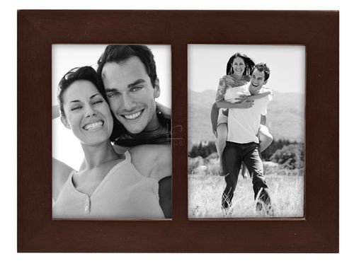 Linear Dark Walnut Wood Split Double Frame 3 x 5"