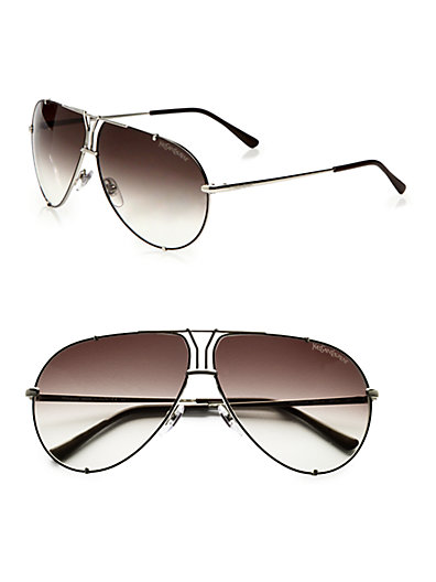 Chic metal frames with an iconic logo between the bridge and top bar. Available in brown chocolate with grey gradient lens.