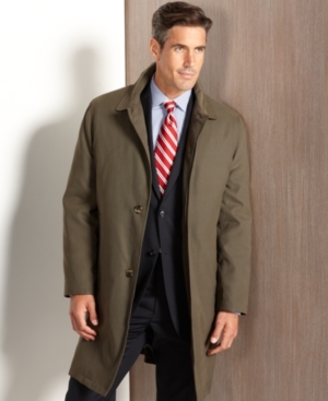 London Fog updates the classic, macintosh-style rain coat with a water-sheddding polyester-blend shell and a removable, cold-weather lining.