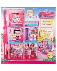 The Barbie® Dreamhouse™ is the ultimate luxury home, and now it's newly renovated with fab pink columns on glamorous photo-real wallpaper. Three fabulous stories include an elevator, lights and sounds.
