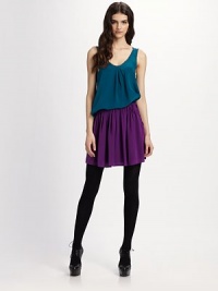 Luxe woven silk in a full A-line silhouette, finished with a chic contrast waistband.