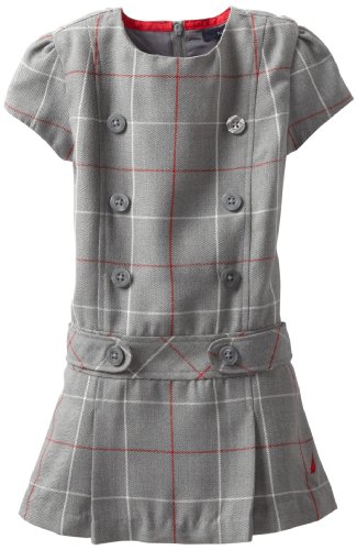 Nautica Girls 2-6X Short Sleeve Plaid Dress, Medium Grey Heather, 3T