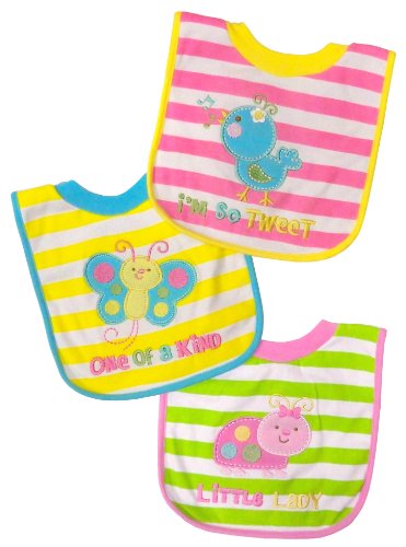 Neat Solutions 3 Pack Applique/ Print Interlock/ Knit Terry Pullover Bib, Girl