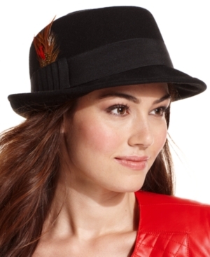 A fabulous feather accents this classic pork pie hat from Nine West, for a look that's completely cold weather chic.