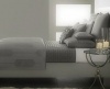 From the Marburg Collection. A graceful floral paisley in a sophisticated palette of grey and red on cotton satin with a subtle sheen, richly edged in twisted braid.