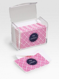 A set made just for you (or someone you love) includes 25 patterned notecards with any name on the front and plenty of room to write inside. Arrives in a convenient Lucite box with coordinating envelopes.