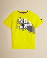 Get into the game with PUMA's inspiring logo tee, egging on your little athlete with aspirational missives.