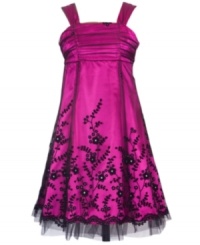 This Rare Editions dress has stunning jeweled details and tulle lined bottom for a look that's cute and classy.